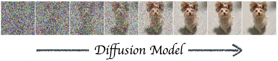 The core idea is simple: a diffusion model learns to denoise. During training, we take real images, gradually corrupt them with random noise, and teach the model to reverse this process. At generation time, we can then sample pure random noise and let the model progressively denoise it into a coherent image.